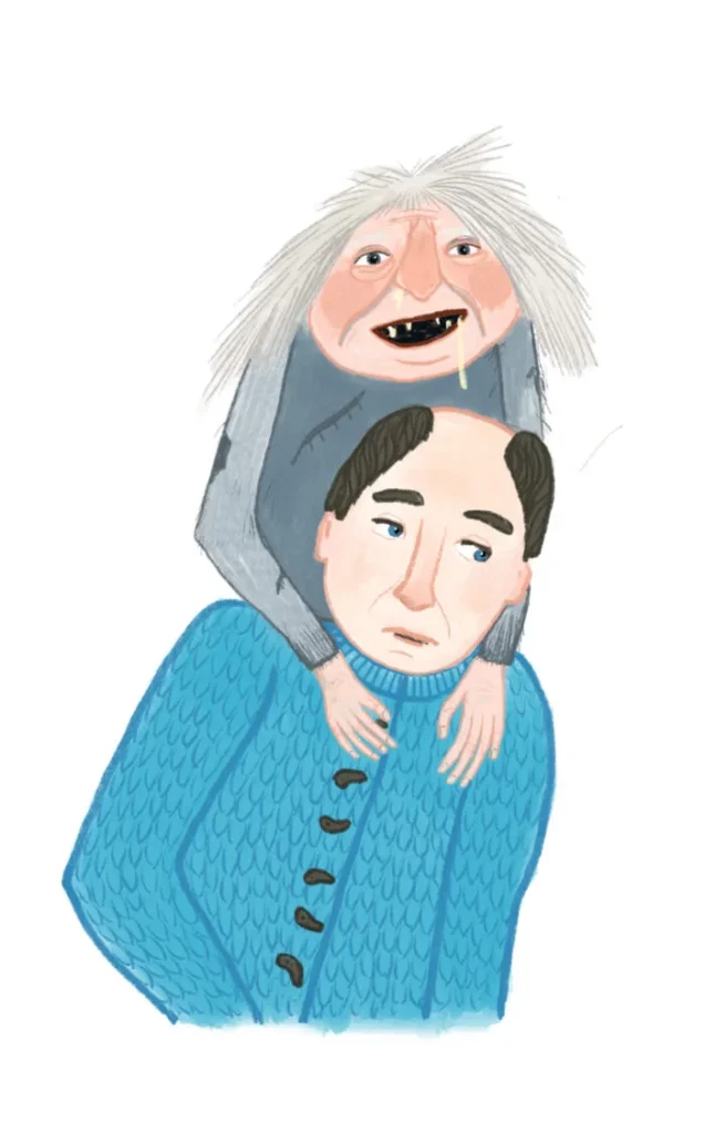 „Mir scheint, da hilft nur eines!“, sagte der Bauer, „ich nehme dich buckelkraxen.“ Er ging in die Knie und lud die alte Frau auf seinen Rücken. Gott sei Dank! Beim Gehen war ihr Gestank schnell verflogen. „Wo musst du denn hin?“, fragte er sie. „Hoch droben im Bergwald ist meine Hütte.“ – Eigenartig. Wo sollte die denn sein? – Aber wurscht!